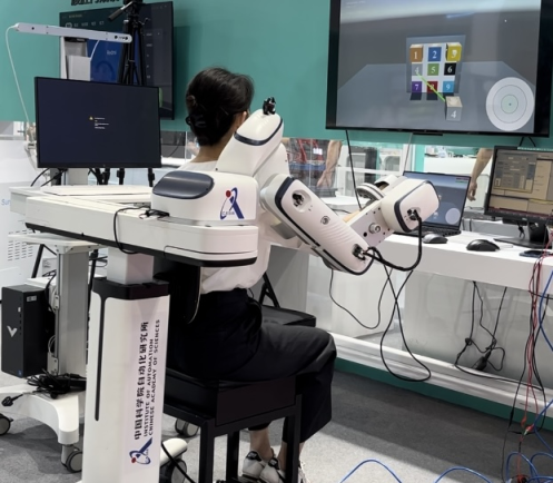 在上肢康复机器人中,患者在与虚拟界面的交互中,能被准确诊断出“此时此刻”的康复需求。“通过一些算法的加入,机器人能实时掌握患者的运动意图,可以通过传感器检测患者主动使了多大的劲儿,再精准匹配上最小的辅助力。”团队成员、自动化所副研究员王晨说。